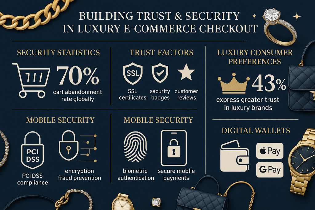 This comprehensive analysis examines ten essential checkout optimization strategies specifically tailored for luxury ecommerce success, drawing from authoritative research including Statista market data, Dynamic Yield industry benchmarks, and ConsumerX consumer behavior studies. The research reveals that 50% of European luxury consumers now use smartphones for purchases, while 43% express greater trust in luxury brands compared to general retailers [4]. However, luxury brands face distinct challenges including higher security expectations, complex international shipping requirements, and the need to maintain brand prestige throughout the digital transaction process.
