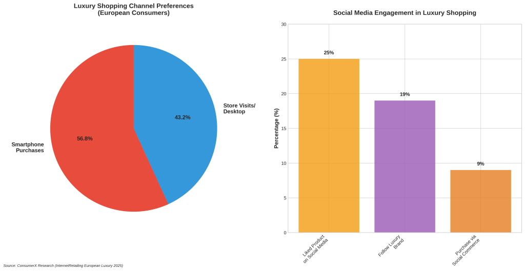 - Mobile Adoption Acceleration:Â 50% of European luxury consumers now use smartphones for purchases, requiring sophisticated mobile optimization strategies [4]