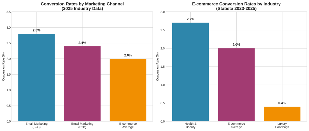 The impact on customer experience is measurable through conversion rate data. Industry research shows that the average conversion rate across all e-commerce sites remains under 2% [3], with significant variation by industry—from 2.7% for health and beauty to just 0.4% for luxury handbags [3]. While multiple factors influence these rates, the consistency of messaging and experience across touchpoints plays a crucial role in conversion optimization.