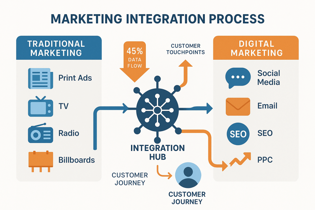 The fragmentation problem extends beyond organizational structure to encompass measurement and attribution challenges. Traditional marketing approaches, while effective for building brand awareness and establishing market presence, have historically struggled with precise measurement and attribution. Digital marketing, conversely, offers granular tracking and real-time optimization capabilities but may lack the broad reach and credibility-building power of traditional channels. Integration addresses these limitations by creating synergistic effects that amplify the strengths of both approaches while mitigating their individual weaknesses.
