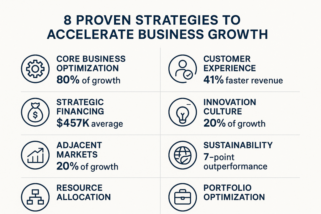 In today’s challenging economic landscape, only 25% of companies achieve sustainable growth over time, according to McKinsey’s comprehensive analysis of over 4,000 global organizations. Yet businesses that master proven growth strategies can achieve remarkable results: customer-obsessed companies report 41% faster revenue growth and 49% faster profit growth than their competitors. With $30.8 billion in small business loans approved by the SBA in 2025 alone, representing 67,377 individual growth investments, the data reveals clear patterns of what drives business success. This analysis examines eight evidence-based strategies that consistently accelerate business growth, backed by authoritative research from government agencies, leading consulting firms, and academic institutions.