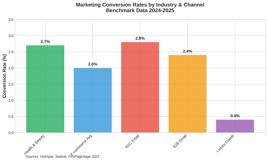 | Email Marketing (B2C) | 65 | 2.8 | List quality, timing optimization, mobile responsiveness |