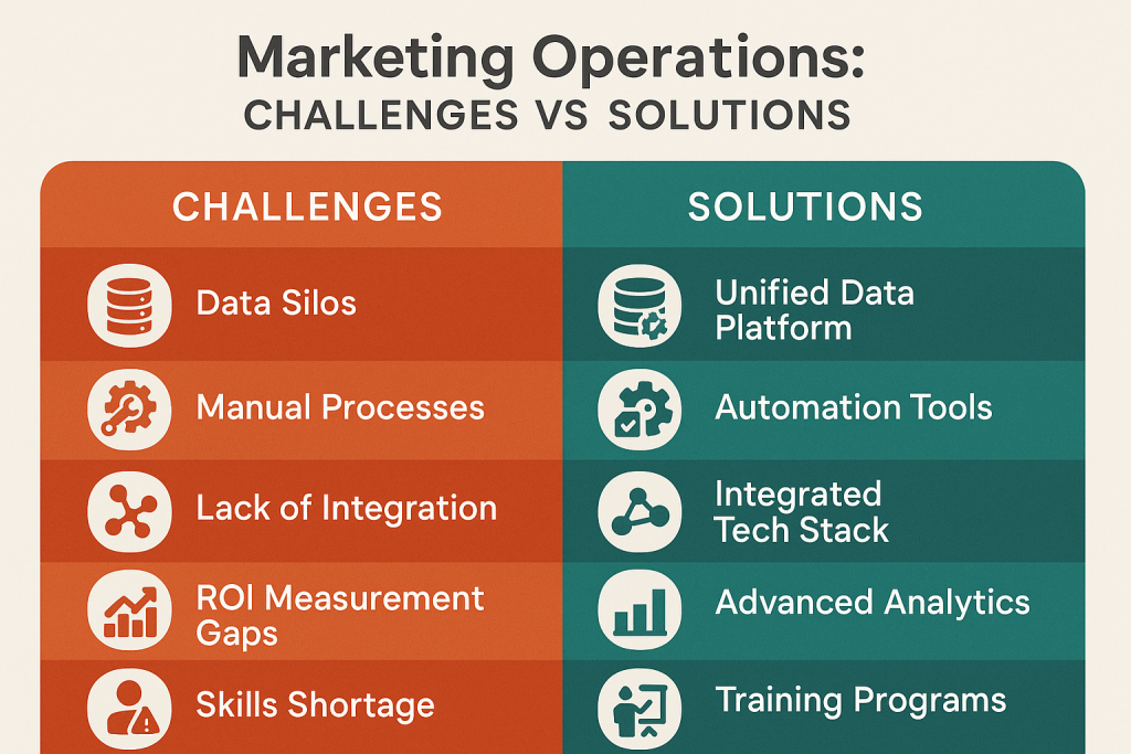 Despite the clear benefits of marketing operations excellence, organizations face significant challenges in implementation and maintenance. The most common obstacles include data silos, manual processes, lack of integration, ROI measurement gaps, and skills shortages. These challenges often compound each other, creating systemic barriers that require comprehensive solutions rather than tactical fixes.